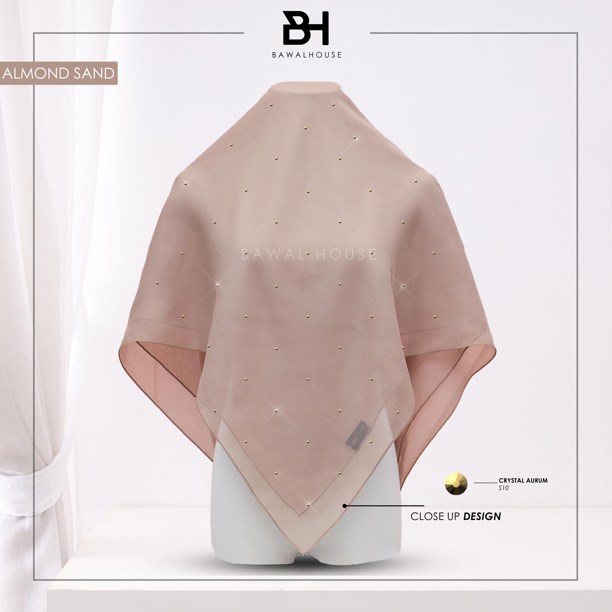 Absolutely not your common voile with Original Crystal from Austria element 001 Crystal Aurum. Our Aurora is made of from japanese voile. This voile is soft and easy to drape. The best cotton voile we choose for you. Among the best. Of course you dont wont miss it ! And Aurora is also one of our best ironless.