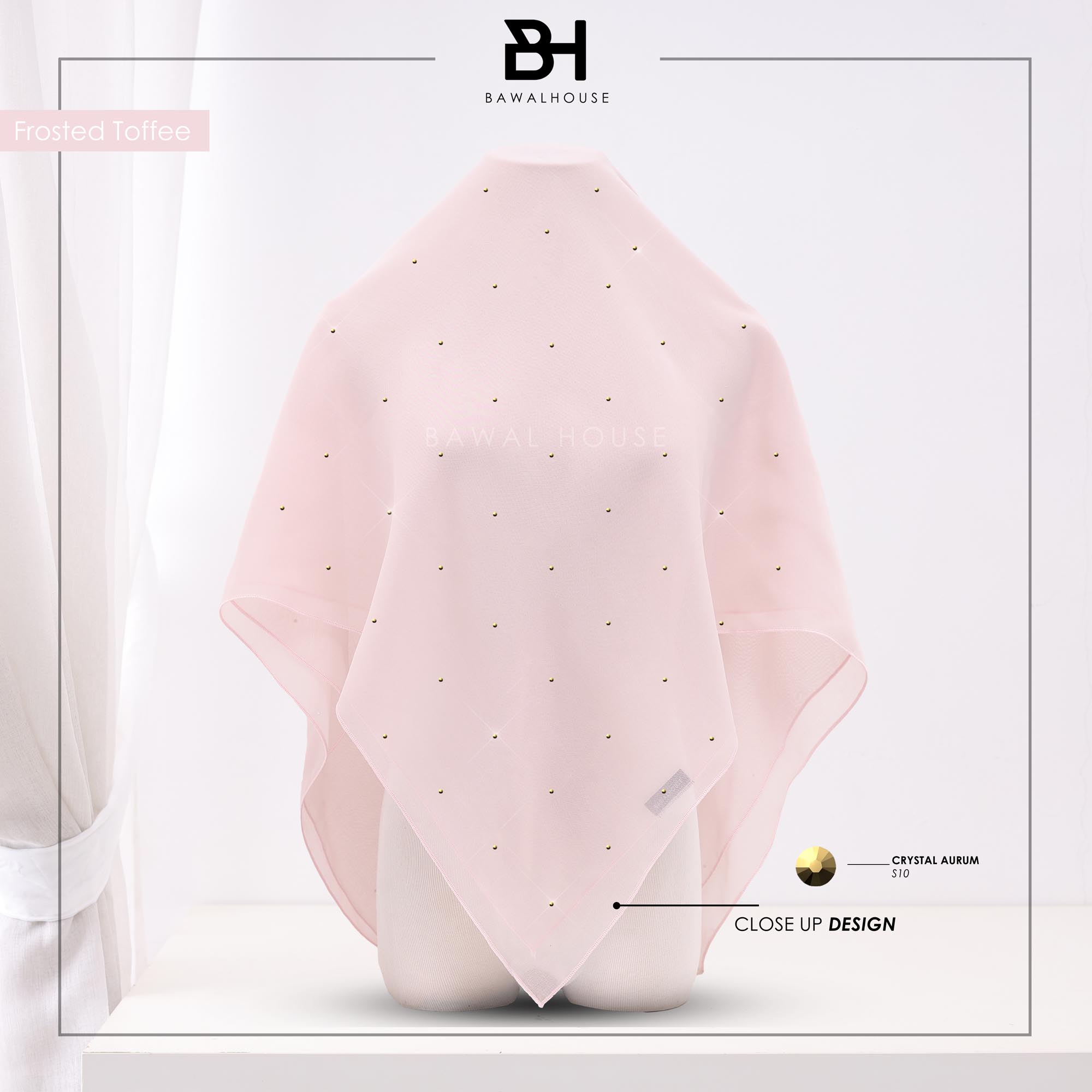 Absolutely not your common voile with Original Crystal from Austria element 001 Crystal Aurum. Our Aurora is made of from japanese voile. This voile is soft and easy to drape. The best cotton voile we choose for you. Among the best. Of course you dont wont miss it ! And Aurora is also one of our best ironless.