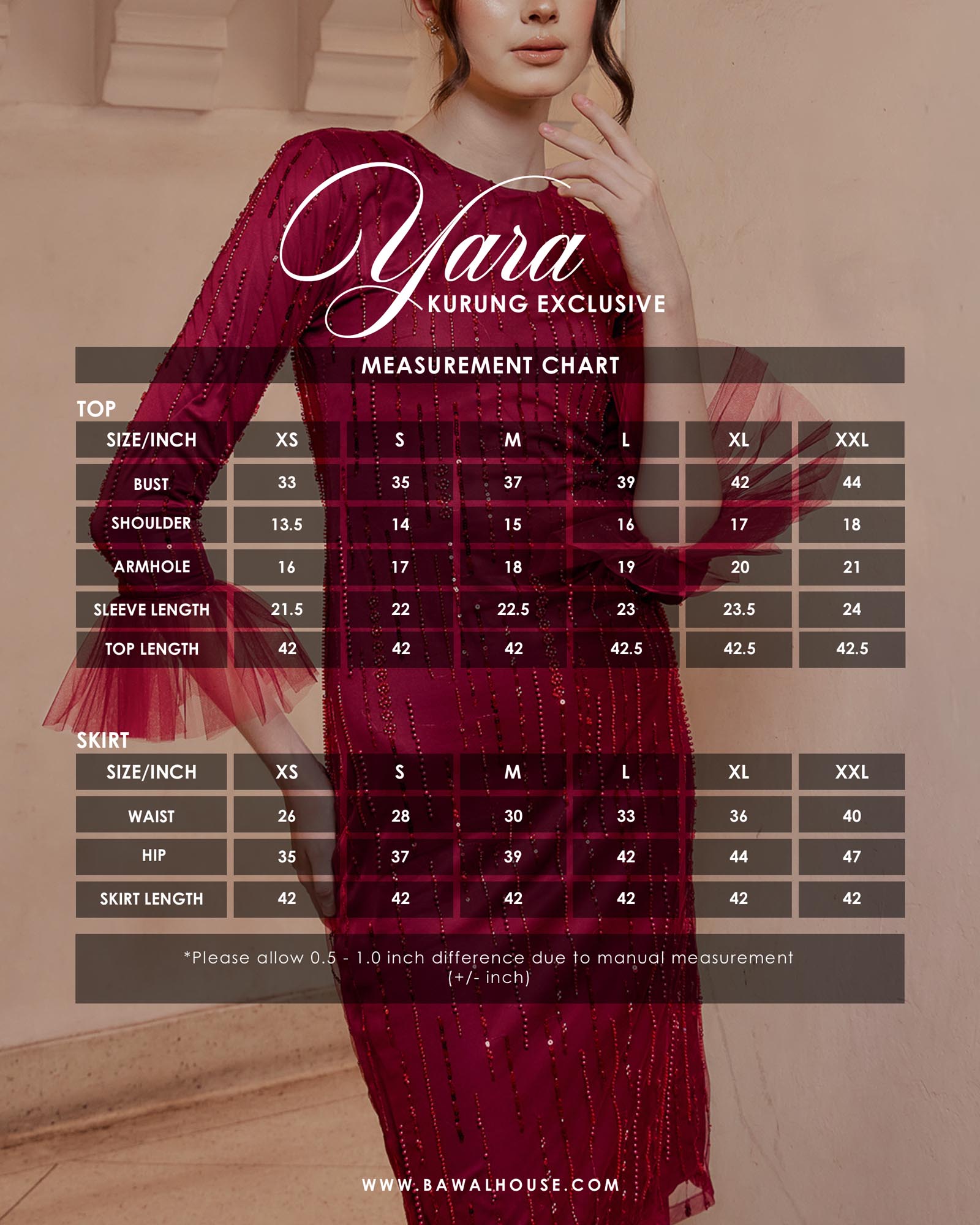Please check your body size measurement carefully before add to cart because our policy is ”NO REFUNDABLE/NO EXCHANGEABLE”. We do not be responsible for the wrong size chosen.