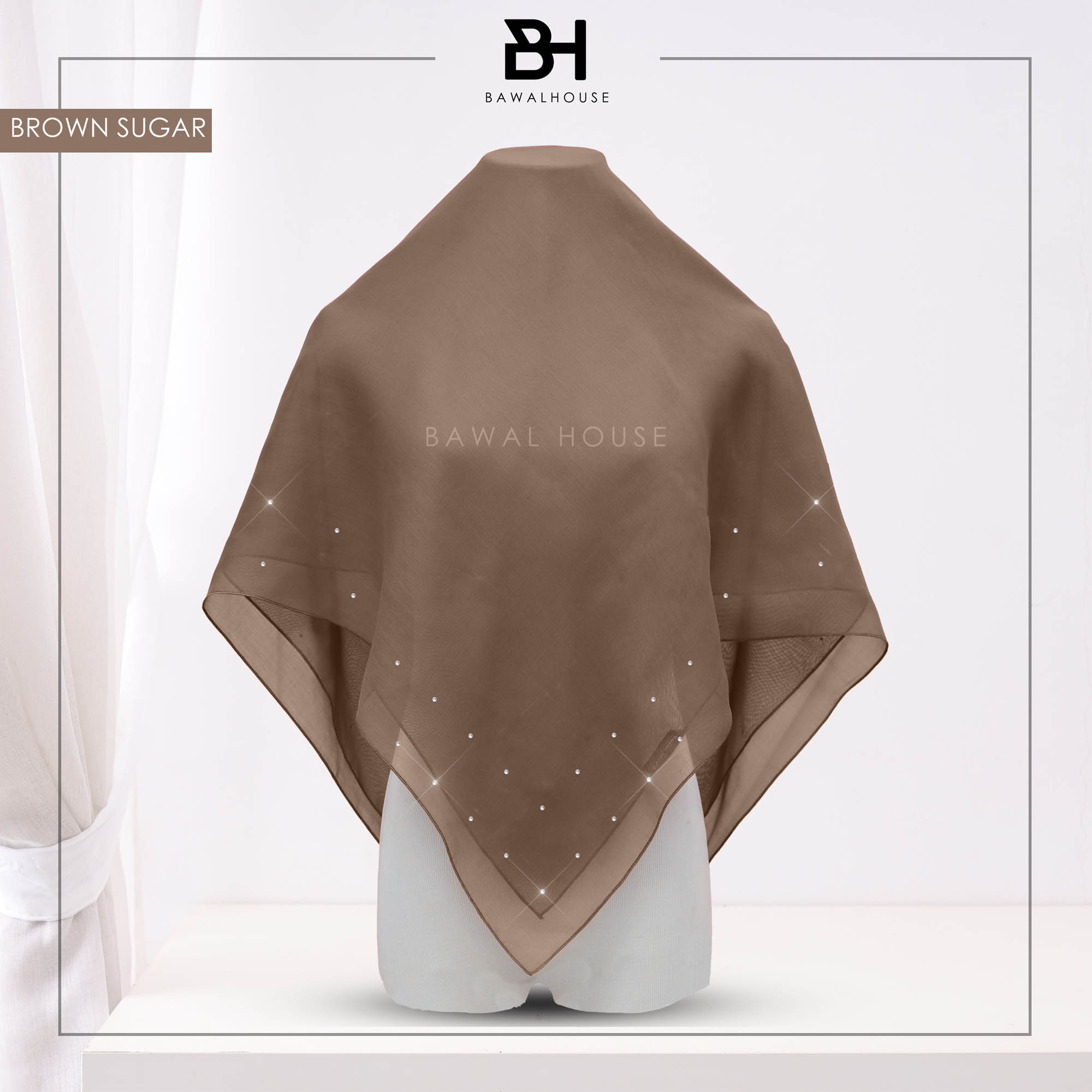 Soft on the fabric. But it can still provide a stunning awning effect. The choice of fabric from Japanese voile that can make the wearer look elegant and stylish. The fabric material is very easy to style and the addition of 70 stunning Original Crystal from Austria dots that can definitely add to the wearer’s radiance. The arrangement of 70 dots Original Crystal from Austria that are beautifully arranged and produce a V shape at the end is sure to captivate the hearts and eyes of the girl.